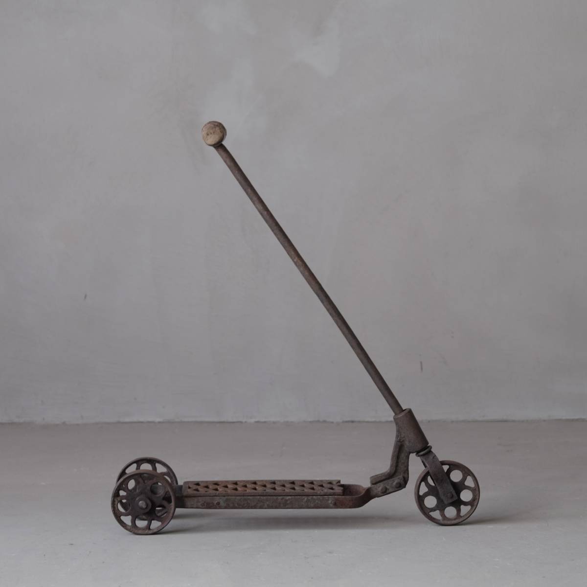 - 02885 古い鉄製キックボード / 三輪車 アイアン インダストリアル 工業系 昭和レトロ