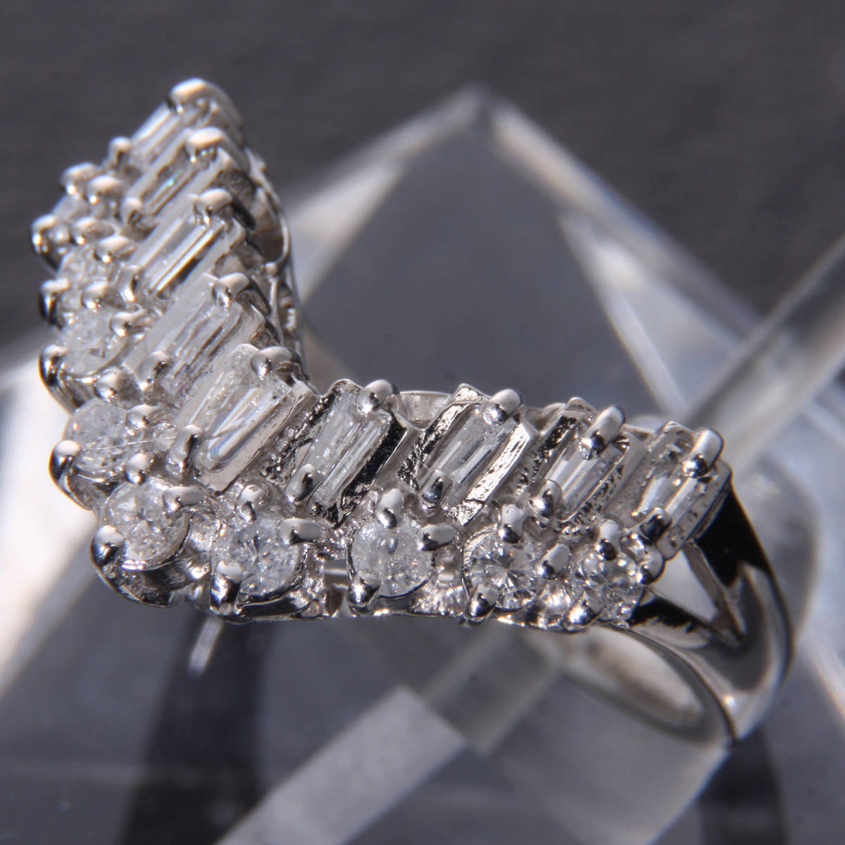 - ke9859◆Pt900リング ダイヤモンド V字 9号
