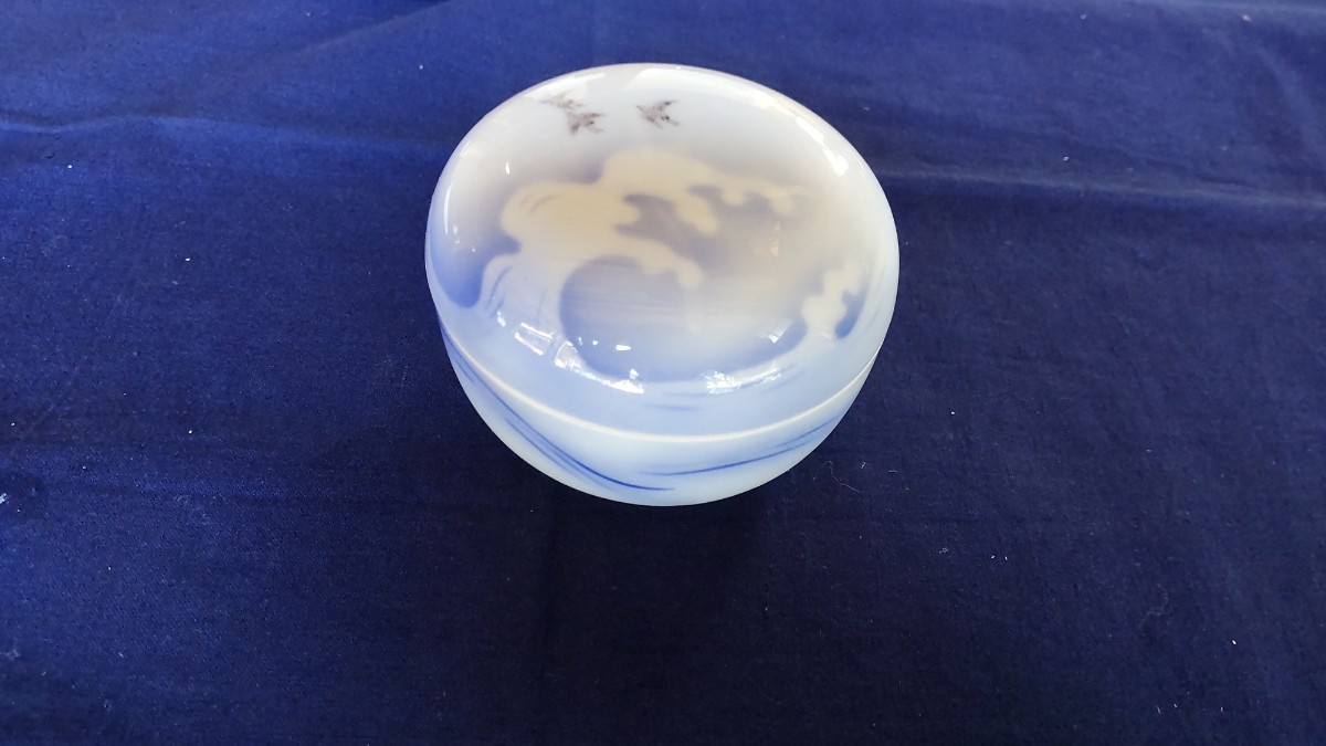 - 深川製磁 蓋物 ボンボニエール 波千鳥染付