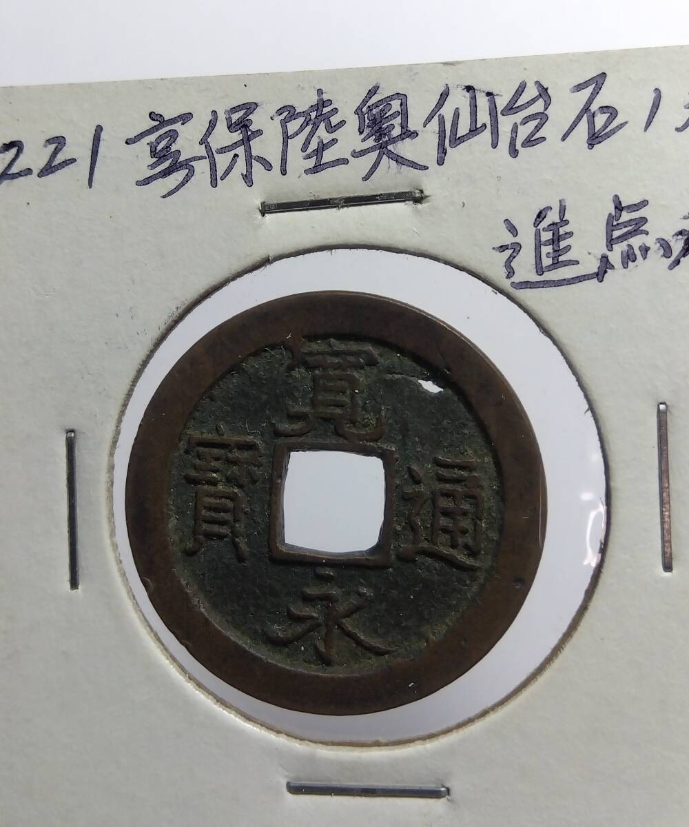- ◆221 寛永通宝 享保 陸奥 仙台 石ノ巻 進点永@新寛永通宝 古銭 穴銭 貨幣 江戸時代@4126