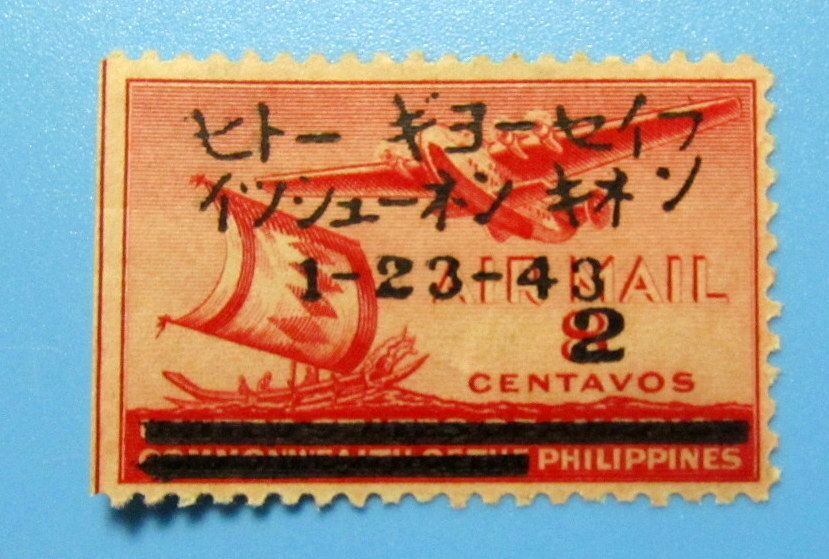 - 南方占領地切手 フィリピン 2C 比島行政府1周年記念 加刷 1943年 裏のり無し ヒンジ無し 左側切り目無し 未使用