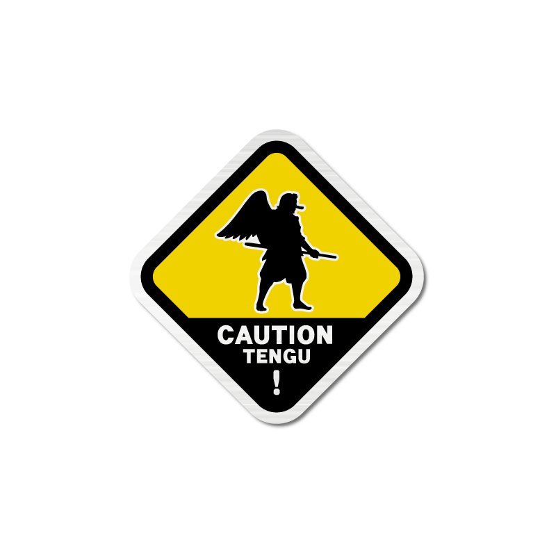 - (ヘアライン)おもしろステッカー 天狗出没注意 6.5cm イエロー 車 シール