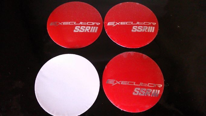 > SSR EXECUTOR 56mm 赤銀 ステッカー ホイールキャップ 4こ アイ エクリプス コルト GTO RVR ミラージュ マスタング エクスプローラー F-150