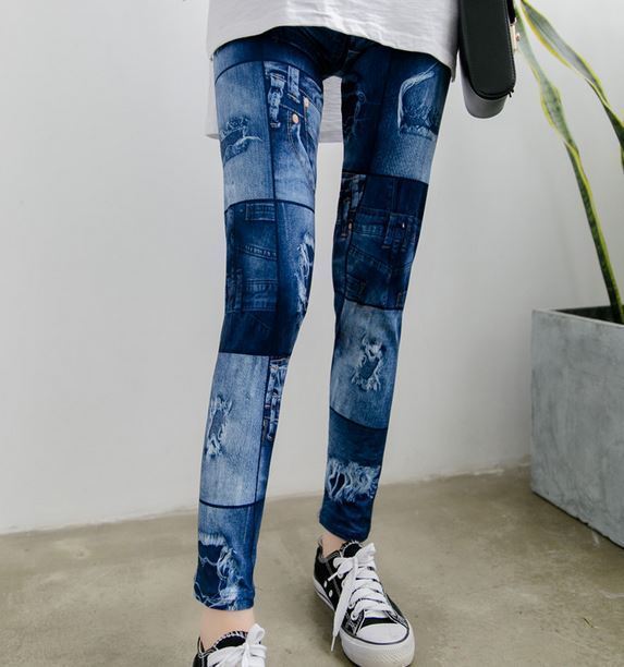 - レディース デニム風レギンス 破れ柄 レギンス パンツ DJ950