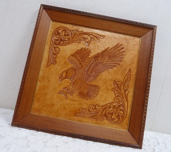 - (☆BM)【大処分セール】レザー アート イーグル 鷹 フレーム 額入り ウォールオブジェ 51.8×51.8㎝ アンティーク調 鳥