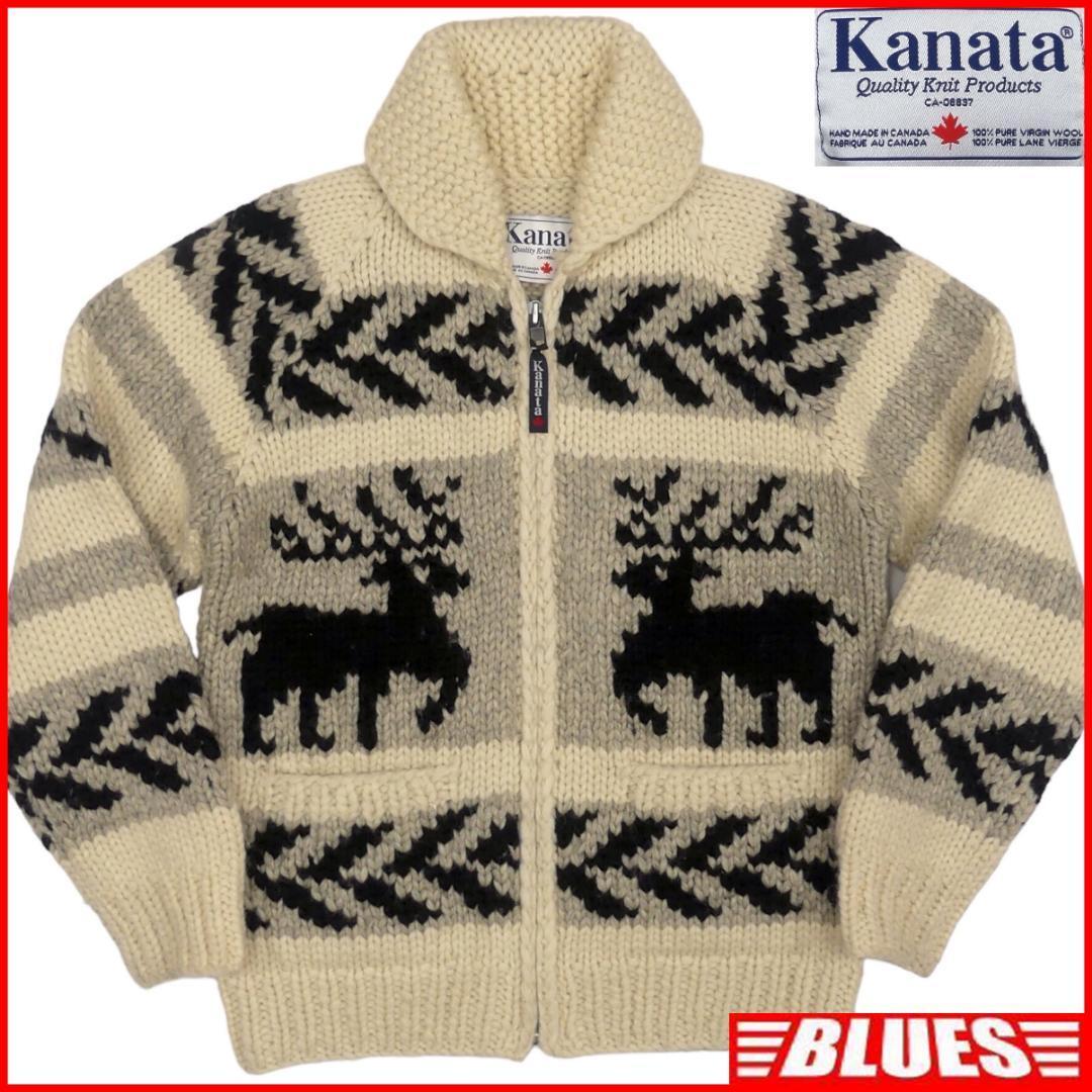 - 即決★カナダ製 KANATA★メンズL位 カウチンセーター カナタ 鹿柄 ウール ニット セーター カーディガン ジップアップ