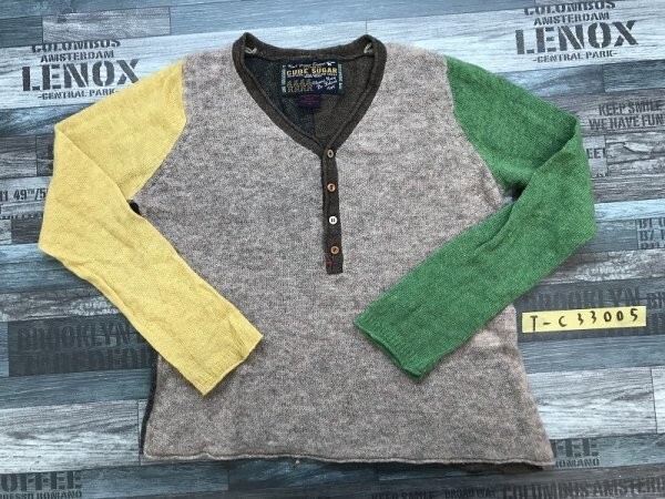 - CUBE SUGAR キューブシュガー メンズ ヘンリーネック カラー切替 ニットソー M 黄色緑他