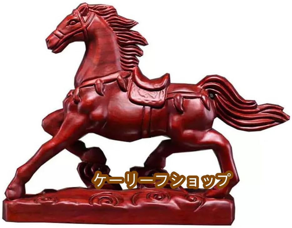 - 【ケーリーフショップ】木彫り 馬の置物 大きい 午の置物 干支 新年 置物 インテリア 縁起物 木製彫刻 美術品 (花梨木, 長さ30 cm)