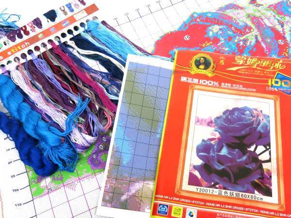 > 刺繍キット ブルーローズ バラ 薔薇 大判クロスステッチ 布サイズ約80x63cm 簡単 中国刺繍キット ハンドメイド 手作り DIY 新品 送料無料
