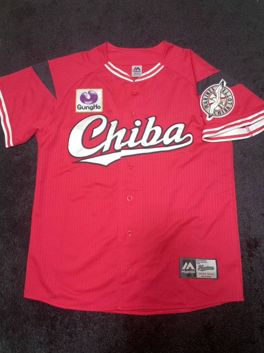 > 即決 送料無料 千葉ロッテマリーンズ ロッテ ユニフォーム マジェスティック製 MEDIUMサイズ 刺繍 ALL for CHIBA レッド 赤