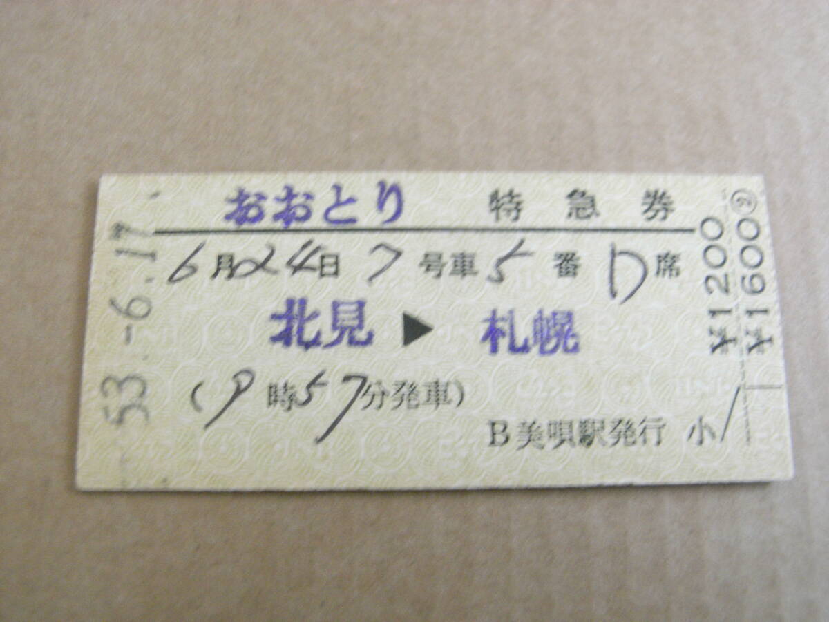 - おおとり 特急券 北見→札幌 昭和53年6月17日発行 美唄駅発行