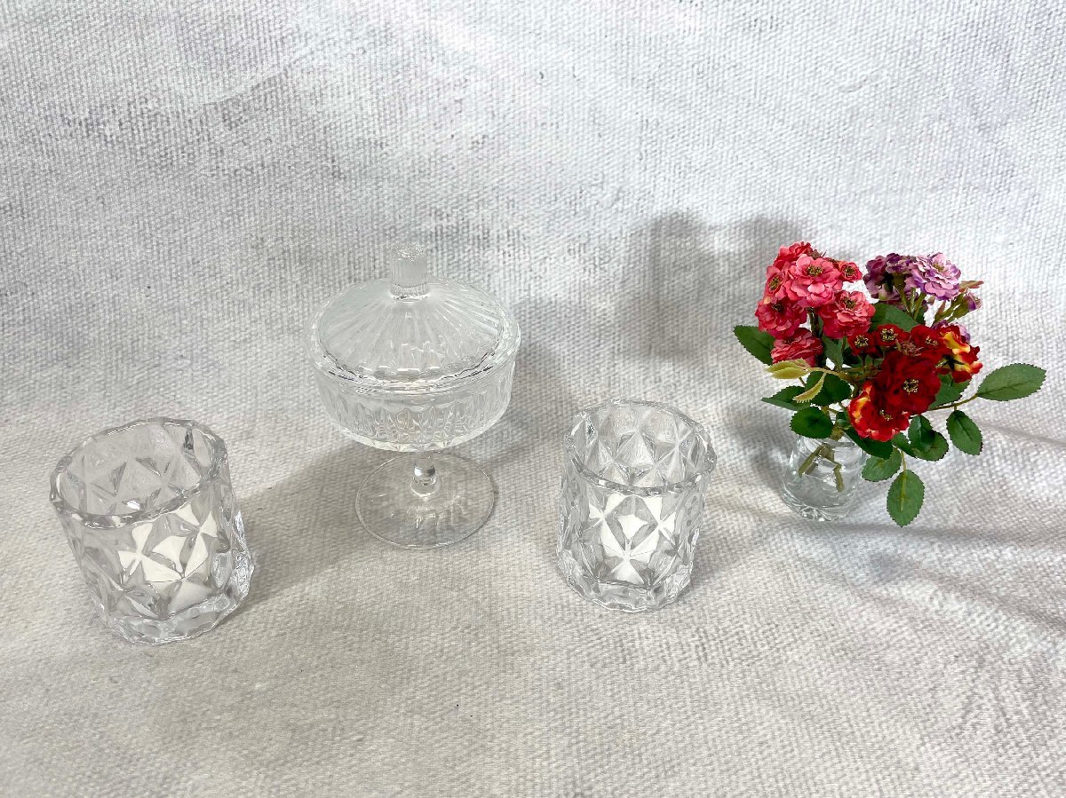 - 【福岡】インテリア雑貨 アソート◆造花・キャンドル付き◆蓋付ガラスW100 D150◆モデルR展示品◆TS6443_Ts