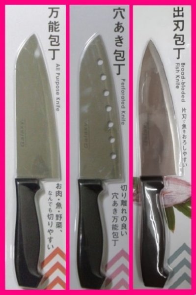 > 【送料無料:包丁:3本】★3丁:万能包丁・穴あき包丁・出刃包丁:お肉,魚,野菜なんでも切りやすい:スムースに切れる:魚をおろしやすい:3点:3個