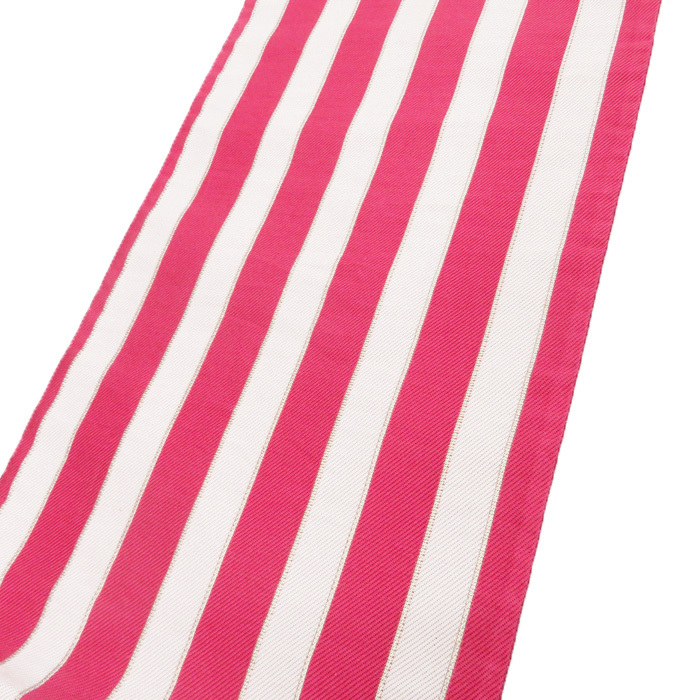 - 【FINAL PRICE】 ★きもの北條★ 振袖用 袋帯 縞模様 リサイクル 成人式 結婚式 結納 パーティー 銀 薄桜色 マゼンタ A589-15 【中古】