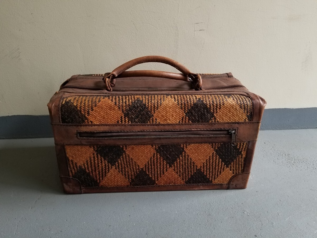 - ヴィンテージ ボストンバッグ ラタン 革 レザー 鞄 インドネシア バスケット アジア 東南アジア