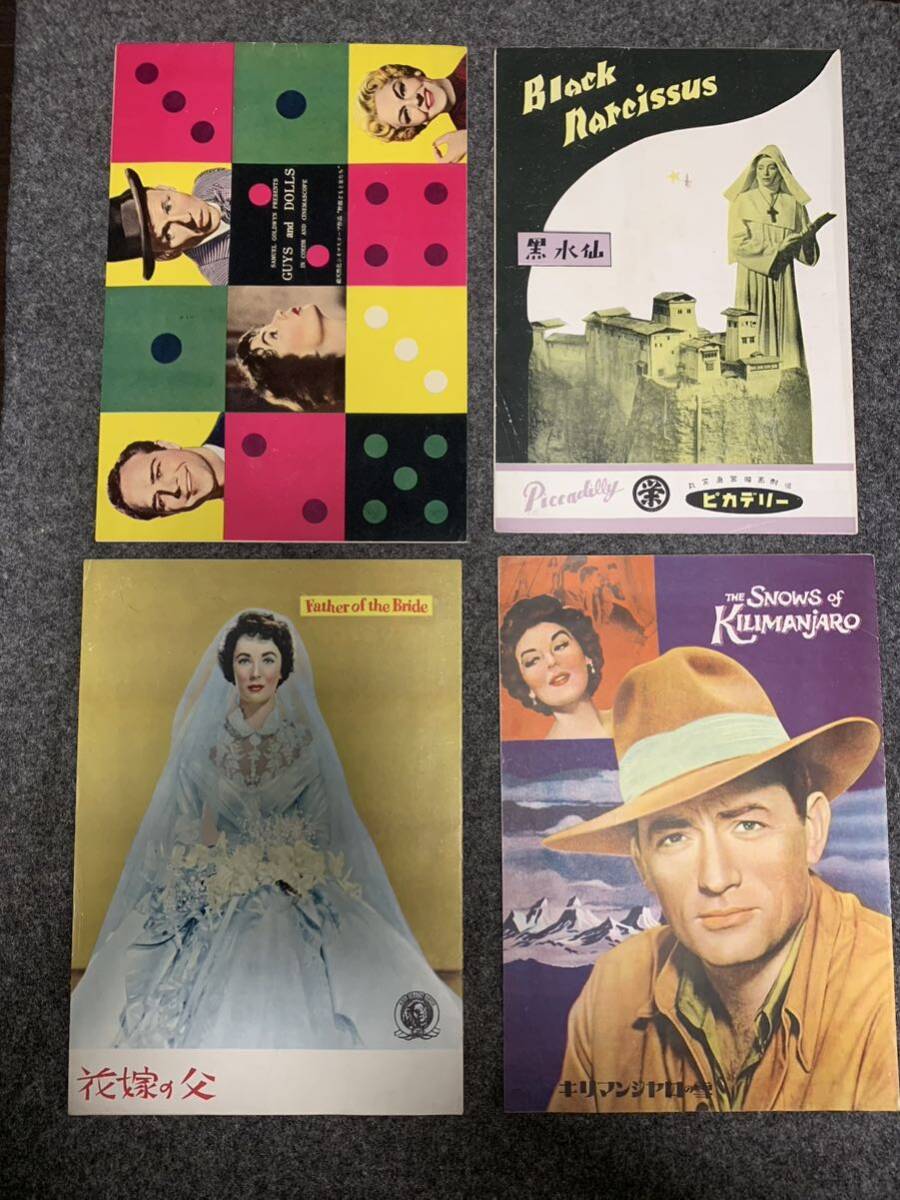 > ⑦ 古い 映画 パンフレット 映画パンフ 洋画 チラシ 野郎どもと女たち 黒水仙 花嫁の父 キリマンジャロの雪