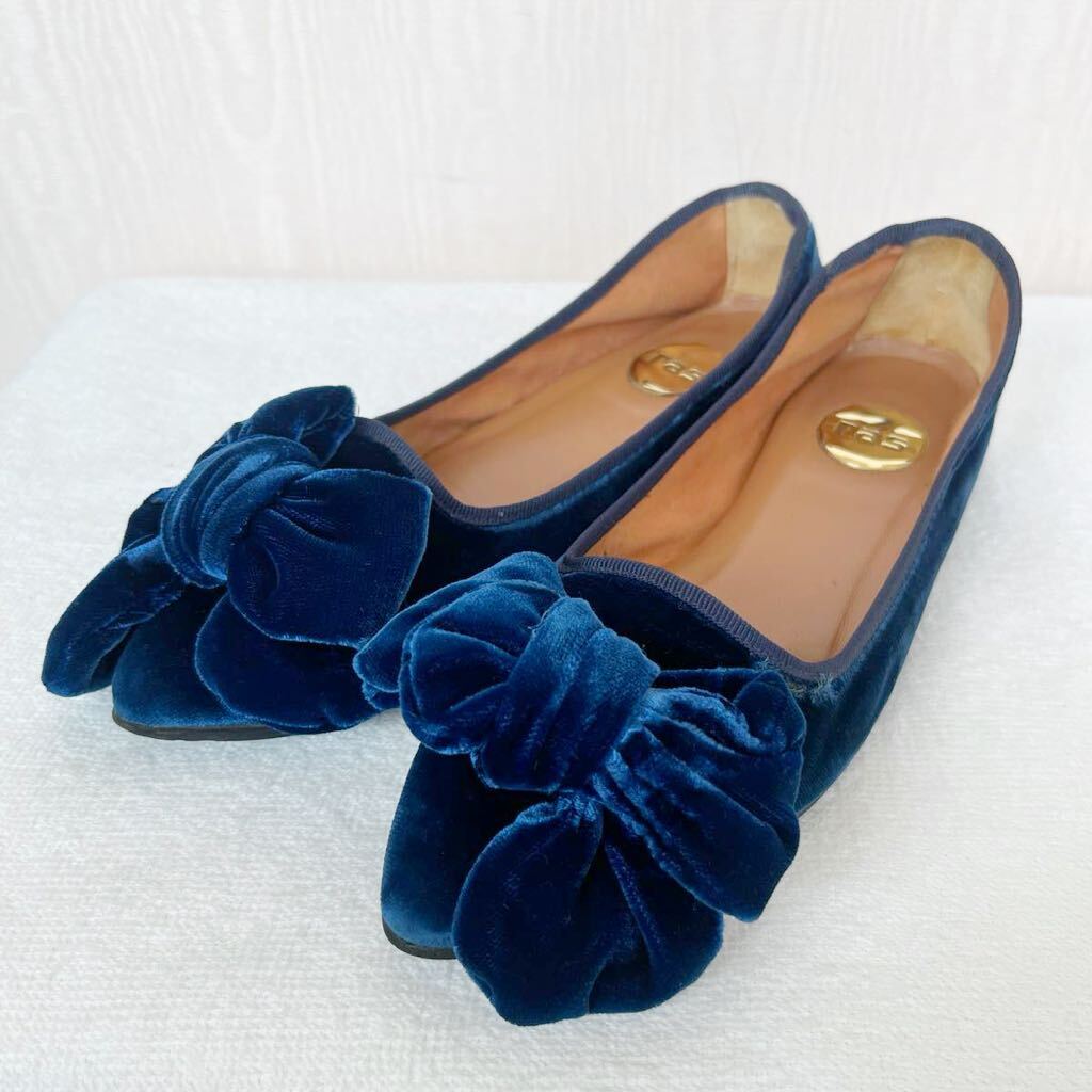 - ras レディース フラットシューズ 35 ベロア ネイビー バレエシューズ
