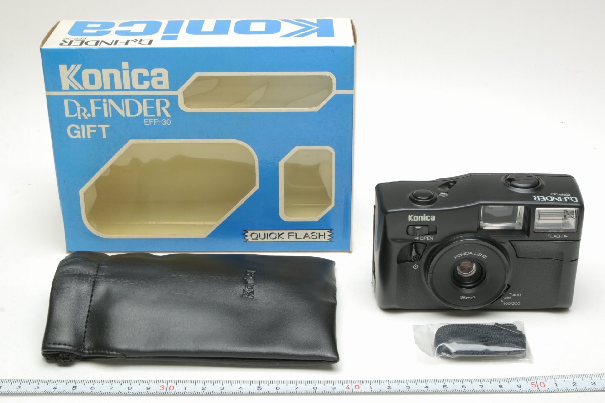 - ※【美品】 Konica コニカ コンパクトカメラ Dr.Finder Gift EFP-30 黒 ブラック ギフト ケース、ストラップ付 c0210