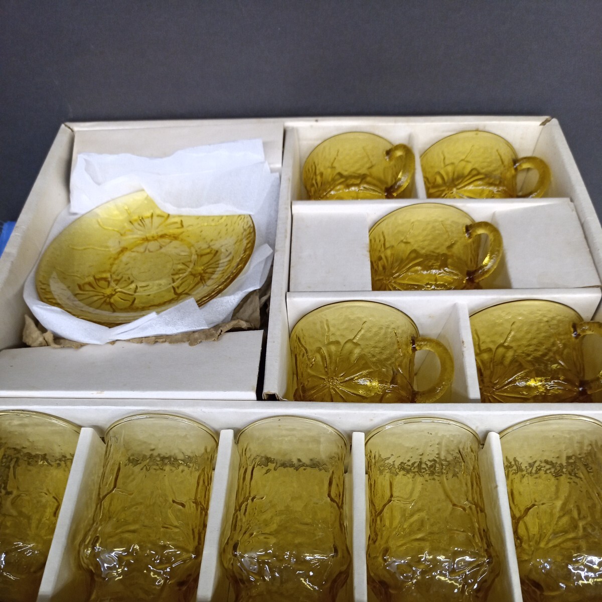 - ガラス アンカーホッキング レインフラワー ハニーゴールド カップ&ソーサー 5客 タンブラー 5個 (anchor hocking ファイアーキング)