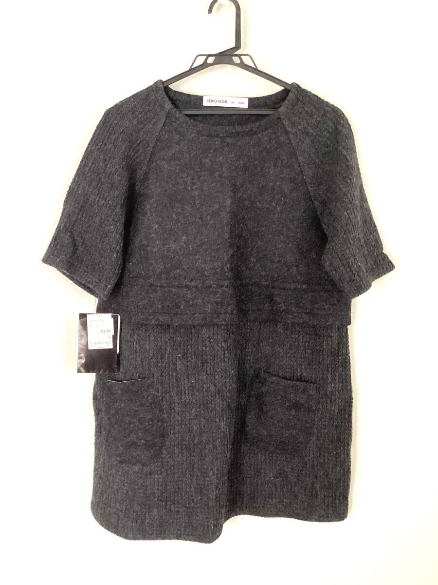 > M13 新品未使用 ダークグレー 半袖ニット レディース Fサイズ Lサイズ相当 定価29,400円 KEIKO KISHI 毛、アンゴラ