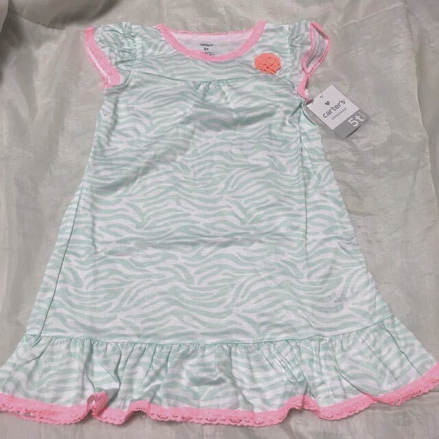 - 新品タグ付き☆Carter’s半袖ワンピースパジャマガウン5Tゼブラ水色カーターズ ナイトガウン