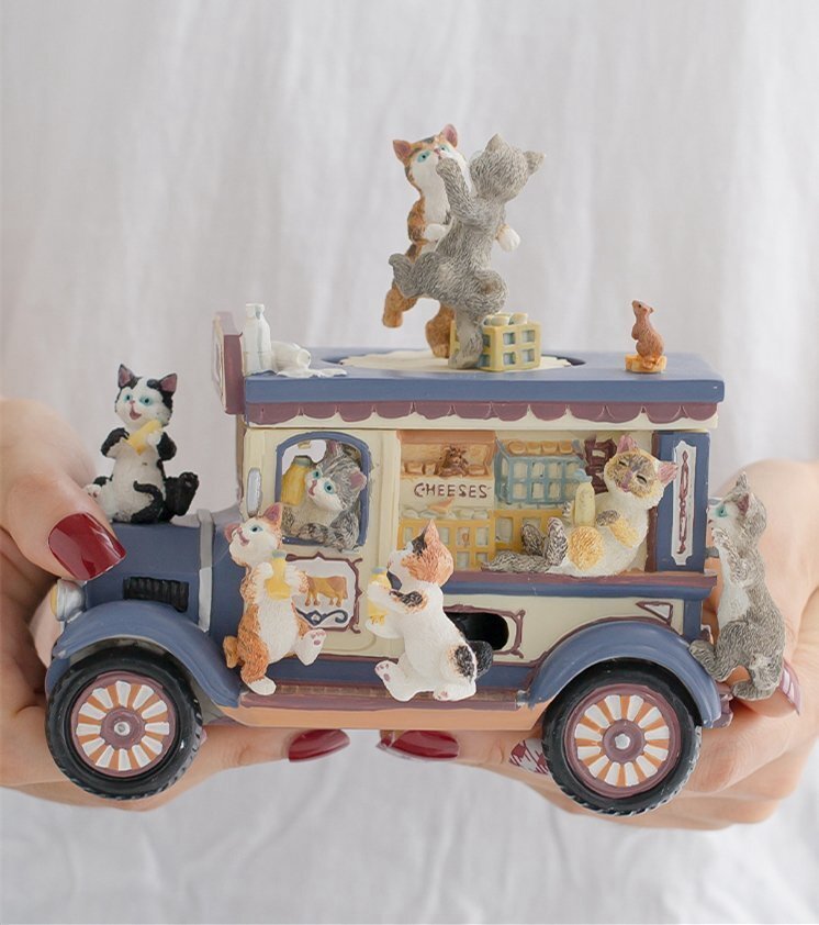 - 飾り 猫 ネコ 車 手描き 時計仕掛け 心地よ 回転 オルゴール ミュージックボックス リアい音色 樹脂 置物 部屋 インテ HD539