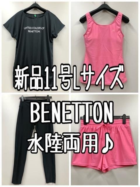 - 新品☆11号L黒×ピンク系♪BENETTON水着4点セット♪水陸両用♪レギンス付☆k284