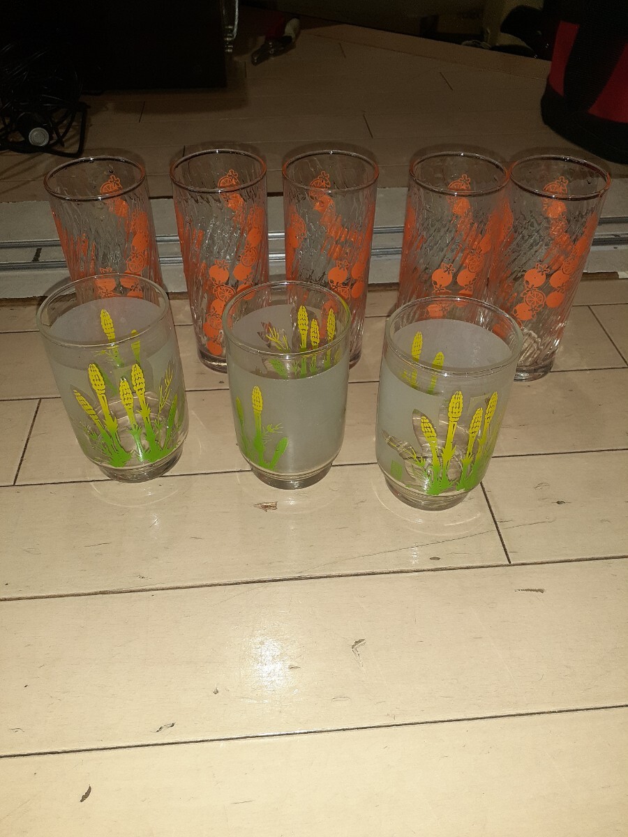 - 大正 つくし オレンジ コップ まとめて 当時物 グラス ガラスコップ レトロポップ