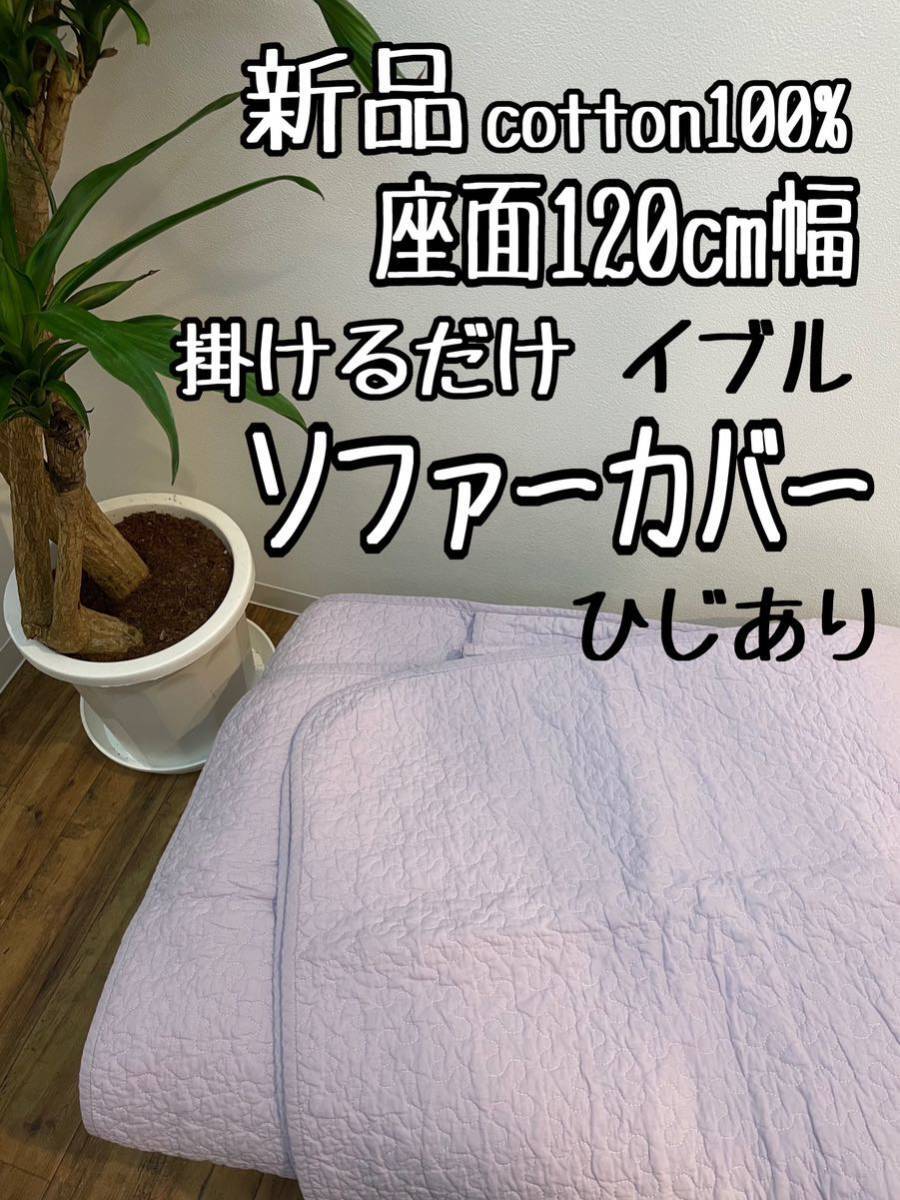 - 新品☆座面120cm幅♪ラベンダー系♪綿100%ソファカバー♪肘あり☆z540