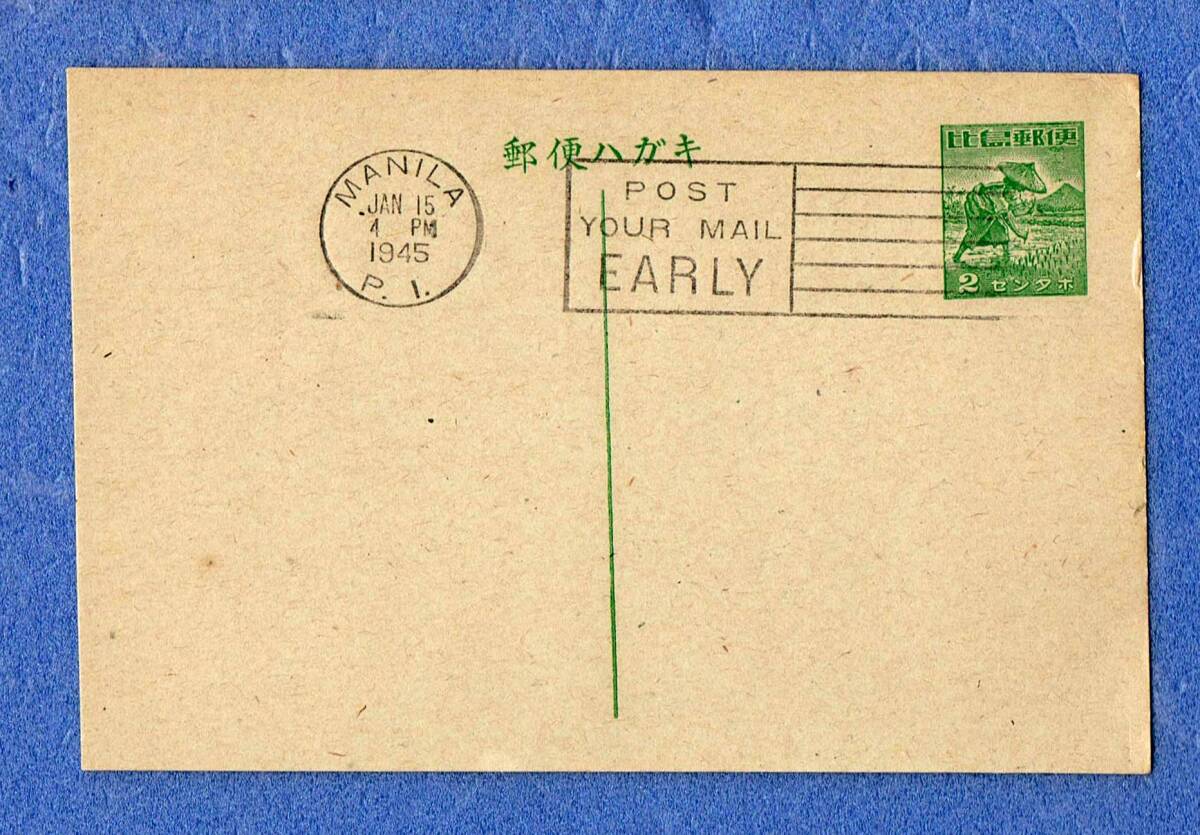 - 南方占領地切手 郵便ハガキ フィリピン YOUR MAIL EARLY マニラ局 裁断ミスか?