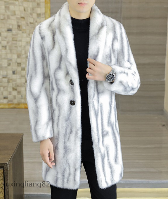 - 冬用 新品 両面着 ファーコート メンズ フェイクファー 毛皮一体 ロングコート 厚手 紳士 アウター カジュアル 防寒 暖か 2XL