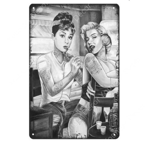 y148a ブリキ看板  レトロ メタル サイン ピンナップ スケルトン タトゥー ヴィンテージ 装飾 アート インテリア  拍卖