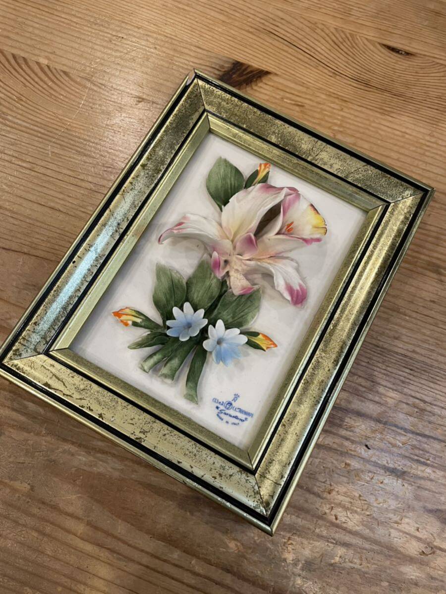 - ヨーロッパ アンティーク イタリア製 壁掛け 額装 花 額縁 レリーフ