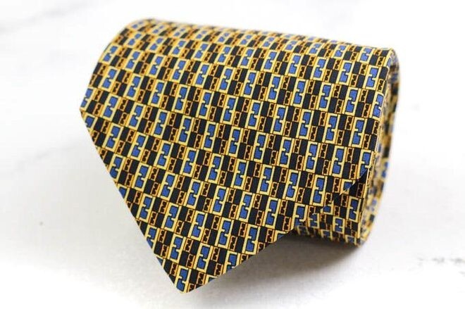- フェンディ シルク ズッカ柄 伊製生地 高級 イタリア製 ブランド ネクタイ メンズ ネイビー 良品 FENDI