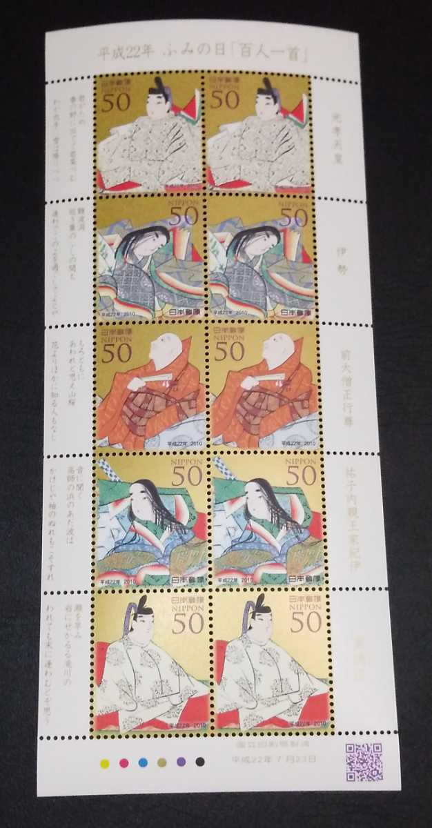 - 2010年・記念切手-ふみの日(百人一首)50円シート