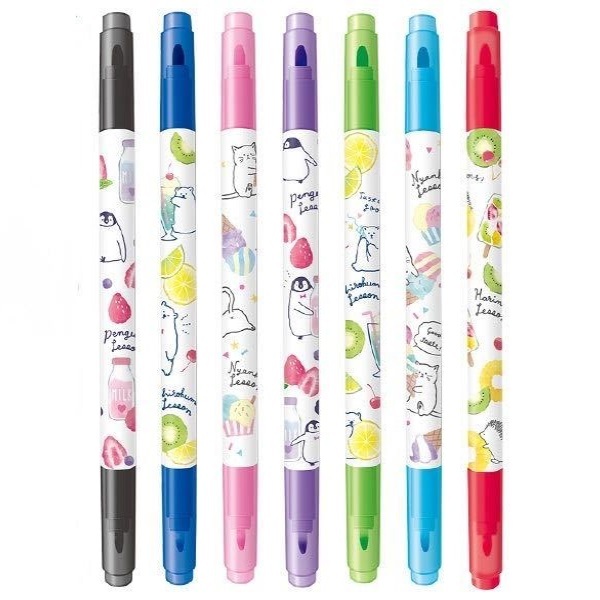 - あにまるれっすん カラー ツインペン 7色セット カラーペン アニマル フルーツ ネコ シロクマ ペンギン ハリネズミ
