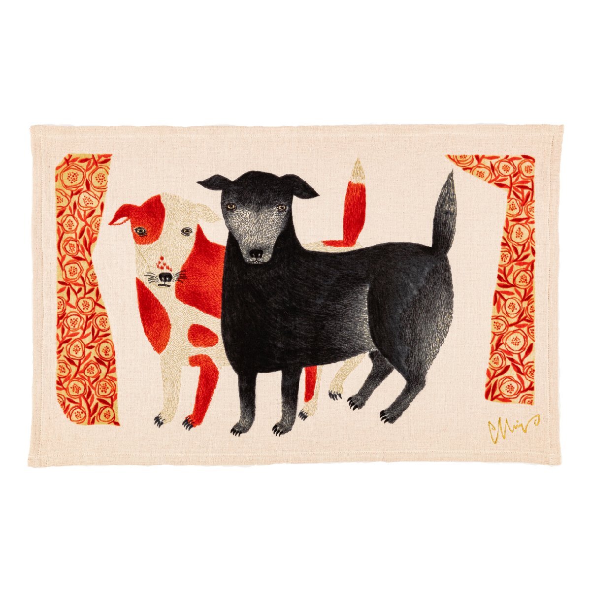 > morita MiW 今治タオル ティータオル 45×70cm 黒犬チョークと赤斑犬のテン イヌ レッド ランチョンマット コットン100%