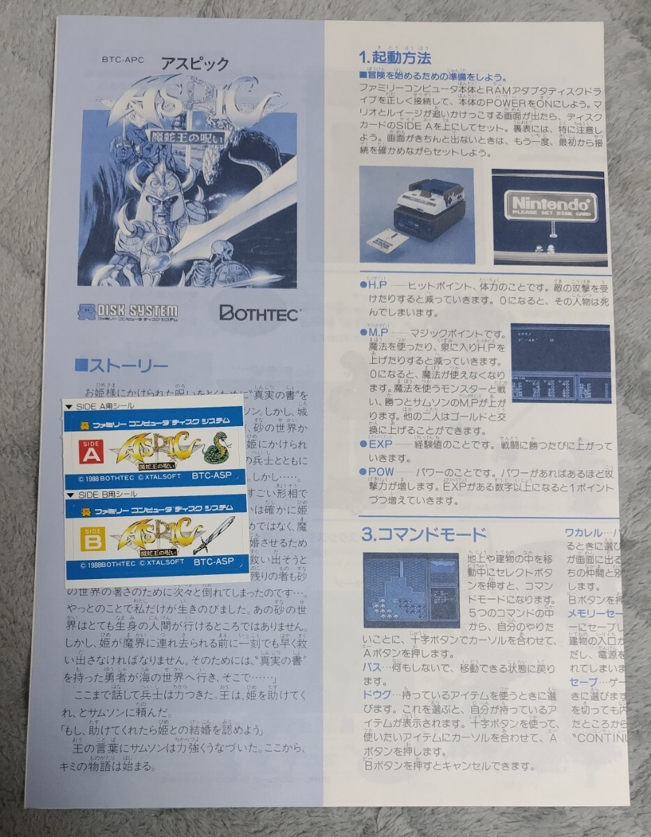 - 未使用 アスピック ファミコンディスクシステム書き換え取扱い説明書 シール付