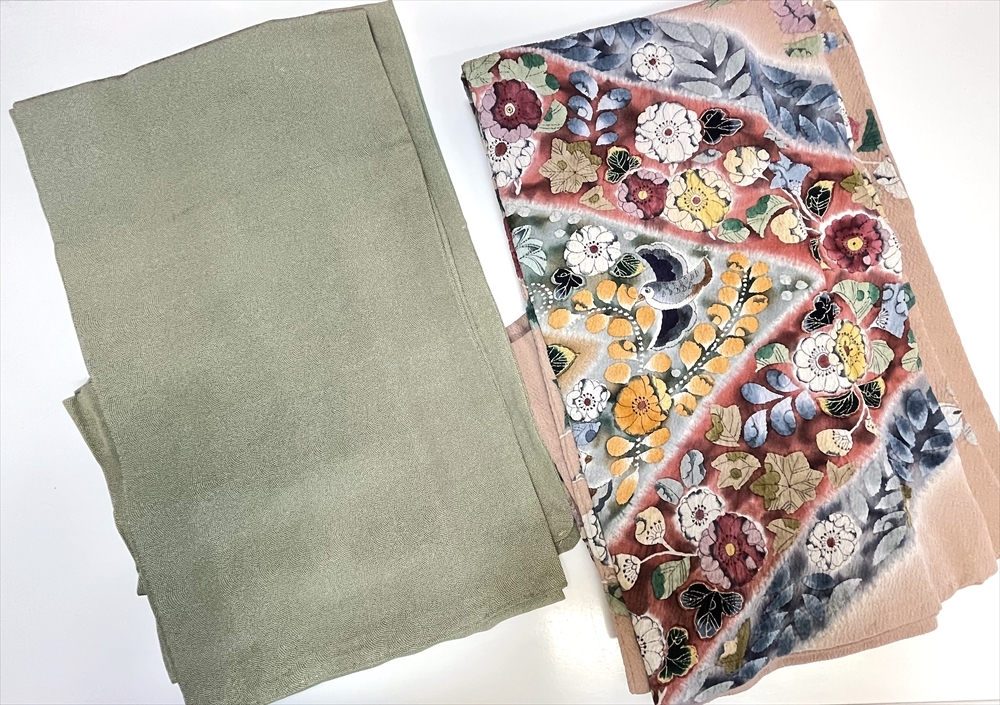 > 花とら●リサイクル着物 訪問着 小紋 2枚まとめて 辻が花 鮫小紋 美品 着用可能 落款入り リメイク 240312