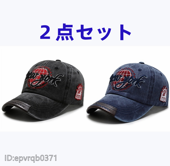 - 2点セット◇野球帽 メンズ キャスケット 新品 刺繍 帽子 ゴルフキャップ フリーサイズ 調節可能 ブラック/ネイビー