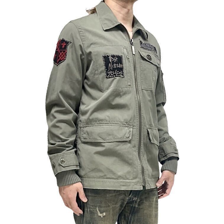 - 中古 JUICY COUTURE ジューシークチュール バンドステッチ 刺繍ワッペン リブ ジップアップ ミリタリー ジャケット S アメリカ LA ブランド