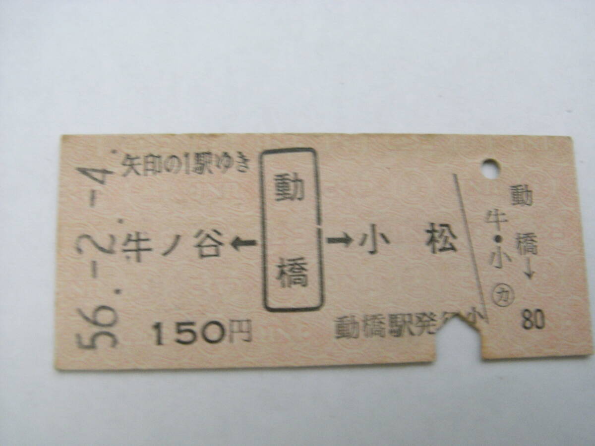 - 北陸本線 牛ノ谷←動橋→小松 150円 昭和56年2月4日 動橋駅発行 国鉄
