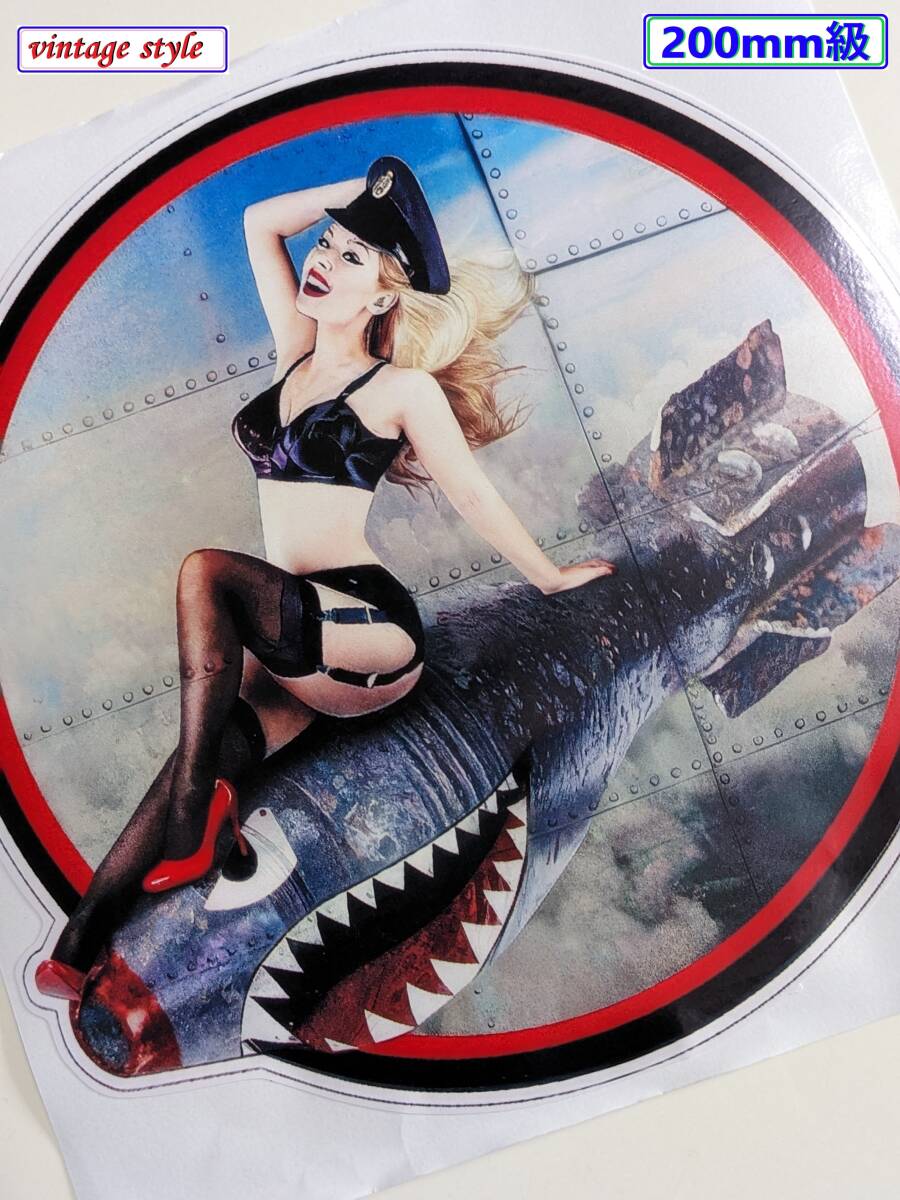 > 【大200㎜♪ヴィンテージデザイン ボンバーセクシーUSA】ガレージ ピンナップガール★レトロステッカー・ミリタリーガールステッカー