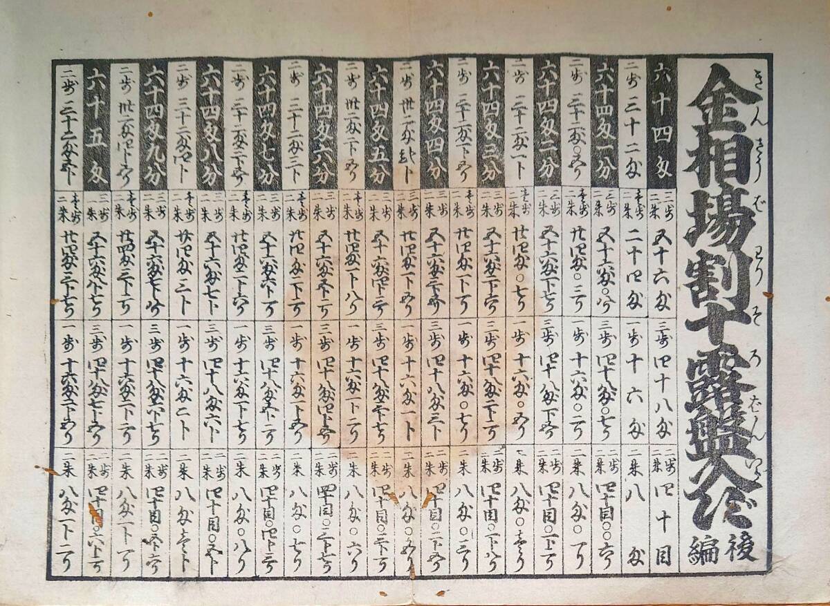 - f240409117〇一枚刷り 和紙木版 浪花みやげ初編 金相場割十算盤要らず 後編 ことば遊び しゃれ なぞ 判じ絵 見立番付 天保年間 塩屋