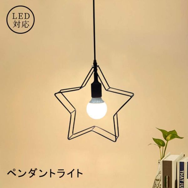 > OTD ペンダントライト 工事不要 スター 五角星モチーフ 星型 1灯 E26口金 LED対応 【ブラック 引掛けシーリング式】