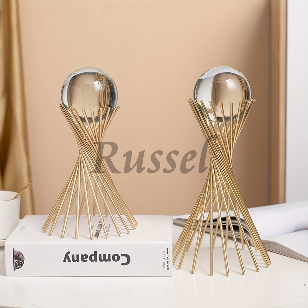 - クリスタル ボール オーナメント オブジェ ゴールデン メタルスタンド インテリア 装飾 クリエイティブ リビング ダイニング 玄関