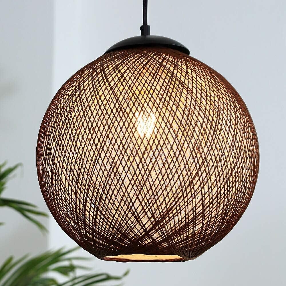 - 女神のライト ペンダントライト アジアン LED 和風 天井照明 照明器具 天然素材 ボール型 ナチュラル ダイニング シンプル 【ブラウン】