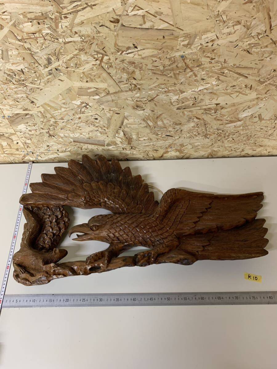 - 木彫 鷹 彫刻 工芸品 置物 古美術 K10