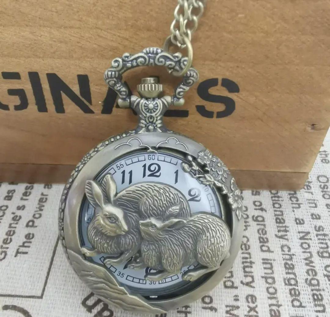 - 縁結びうさぎのペンダントネックレス クォーツ ポケットウォッチ