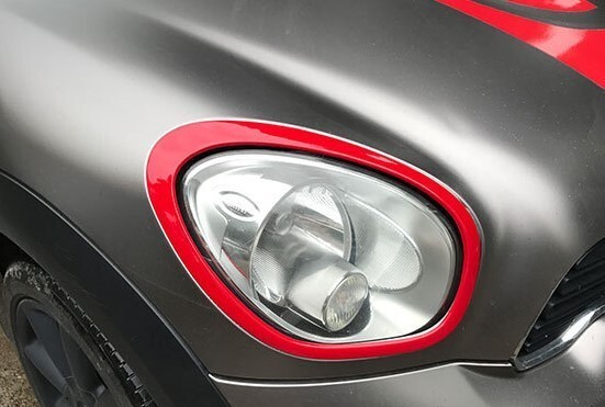 - 憧れ仕様に♪ BMW MINI ヘッドライト リング ガーニッシュ ミニ R60 クロスオーバー ワン クーパー クーパーS オール4 赤 ヘッドランプ